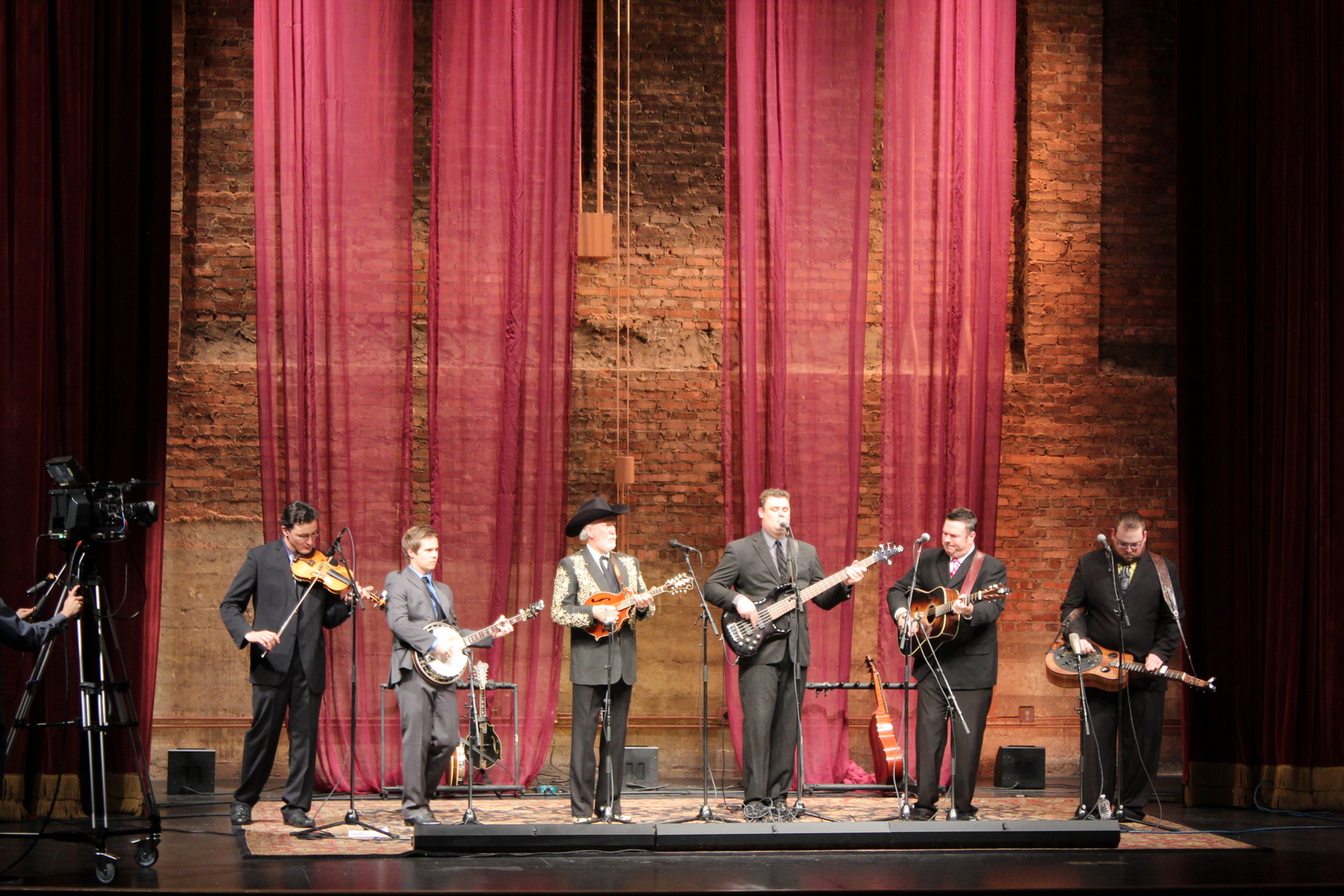 This edition of Song of the Mountains won’t hit the air on Blue Ridge Public TV and other stations until early 2014. It was interesting to see the production of the show. It’s recorded straight through the music. After each act, the camera operators spin around as host Tim White encourages the audience to clap and smile for the audience shots. After several minutes of continued applause, the audience was ready for Doyle—a recent inductee into the Bluegrass Music Hall of Fame.