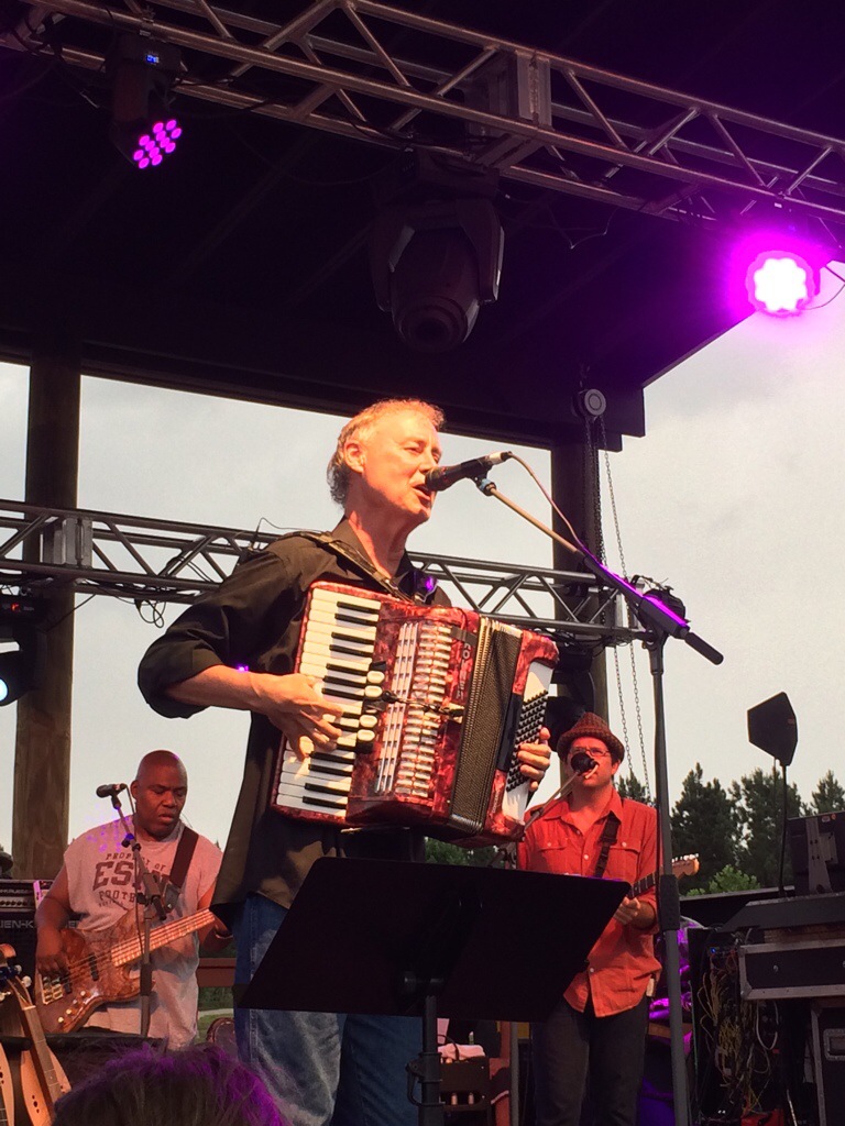 He and the Noisemakers (with a slightly different lineup in the band) did a great set, with one slight break for a rainstorm and another for a great fireworks display. He played lots of favorites, including Rainbow’s Cadillac, White Wheeled Limousine, Long Black Veil, Mandolin Rain and a great rendition of I Believe in Miracles.