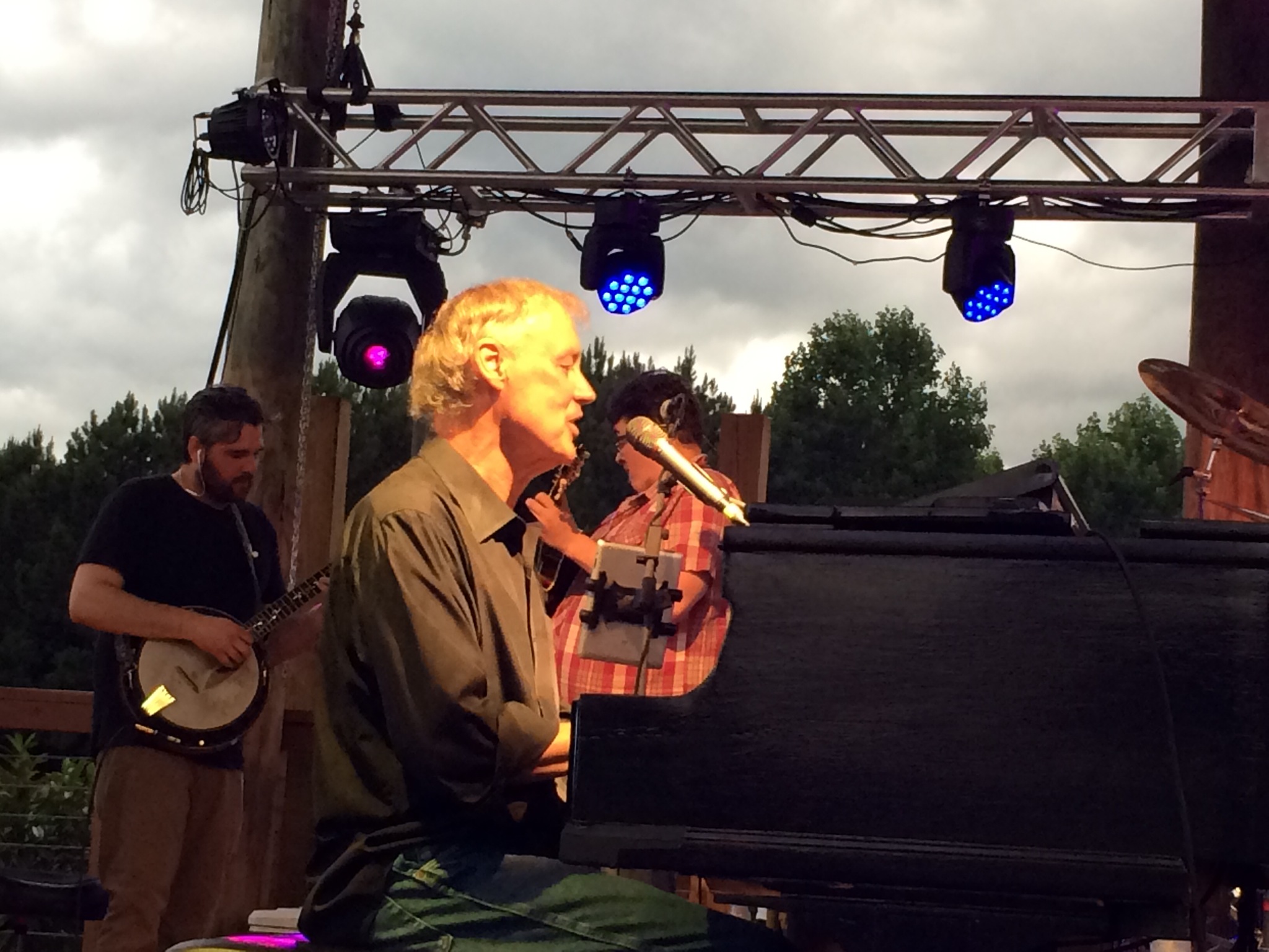 Bruce Hornsby and the Noisemakers hit the stage at the U.S. National Whitewater Center, one of the coolest concert venues around. It’s in Charlotte, NC. In addition to the man-made whitewater river, you can do a zip line across the lake (and just behind the stage.) We were all suited up and ready for a zip line trip when lightning flashed and the zip lining was closed for safety reasons. Understandable but disappointing. Bruce, however, did not disappoint.